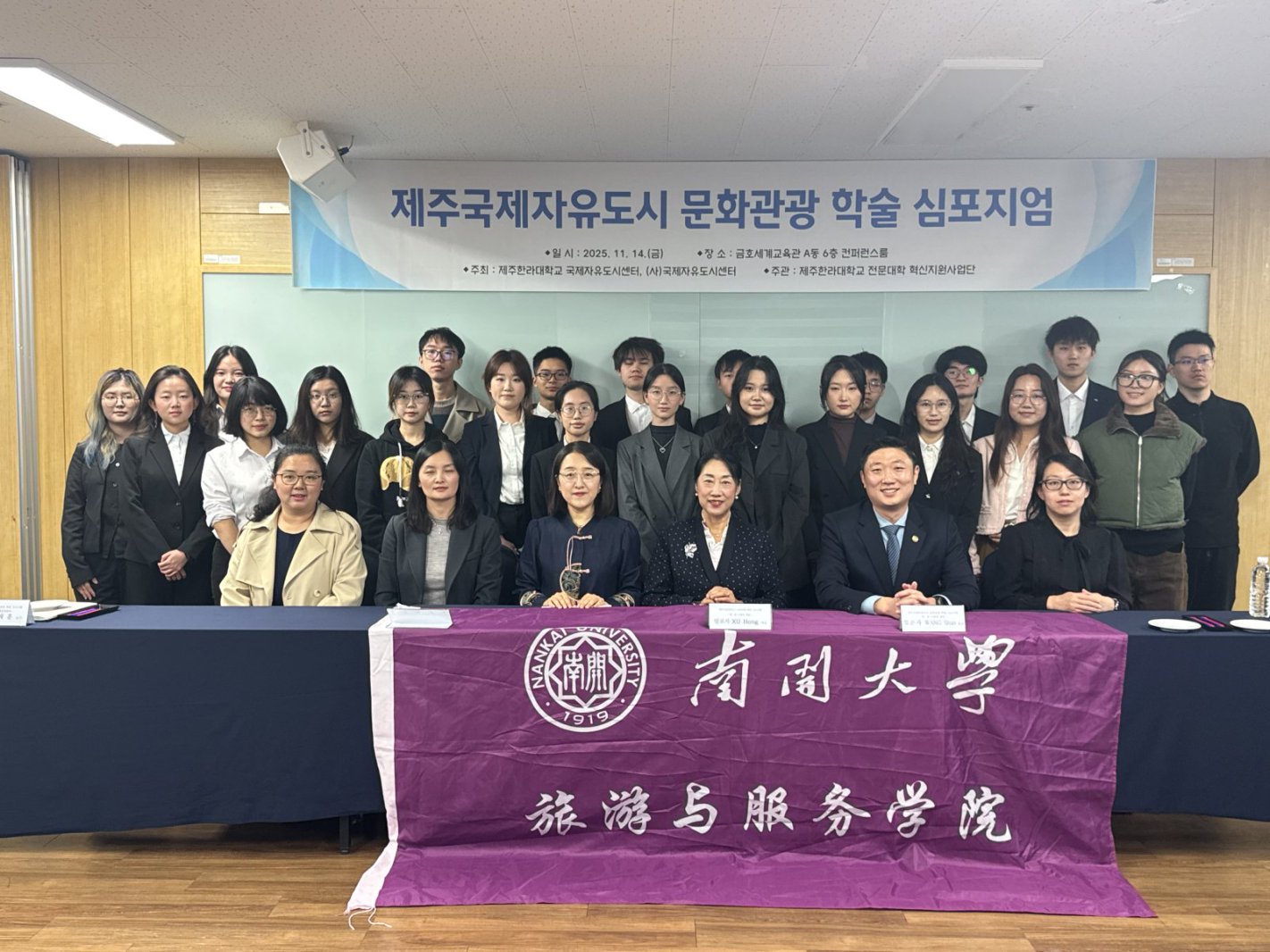 (通讯员 霍菲)为拓宽学生全球视野,加强学生全球胜任力和实践创新能力培养,促进跨文化交流,11月12日至16日,旅游与服务学院组织师生团队赴韩国济州开展交流与研学实践活动。此次活动由院长徐虹教授带队,学院2023级本科生班导师、辅导员、人事秘书共同随行,学院2023级、2024级全体本科生及部分研究生代表一行22人参加。师生一行前往韩国汉拿济州大学参加大学生中韩文化于旅游研讨会及济州国际自由城市文化和旅游国际学术研...