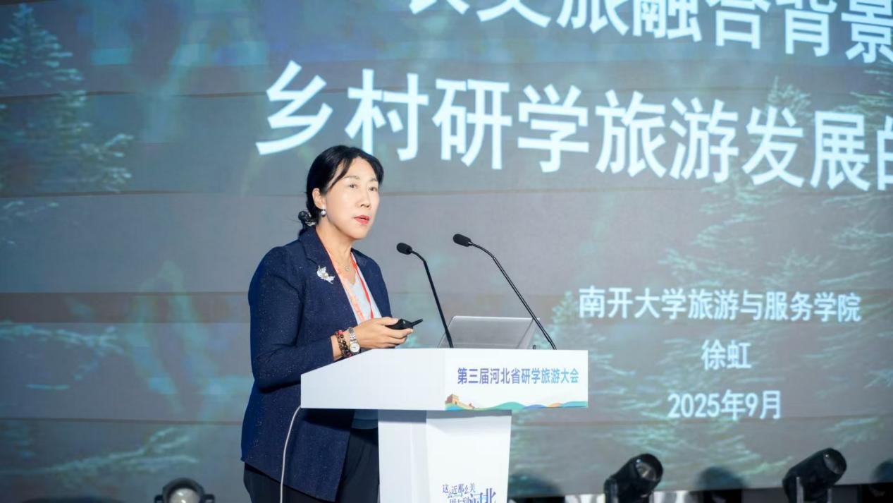 2025年9月26日,我院徐虹教授前往河北省衡水市冀州区参加第三届河北省研学旅游发展大会,此次大会由河北省文化和旅游厅、衡水市人民政府共同主办,共有来自全国各地的专家学者,以及政府部门、研学机构、文旅企业等方面代表450余人参会。我院徐虹院长作为特邀专家在大会上做了主旨发言,题目为“农文旅融合背景下乡村研学旅游发展的思考”,阐述了农文旅融合的必要性、乡村研学旅游背后的五大错位、乡村研学旅游的理念升维及路径设计等,受到与会者的共鸣和好评。