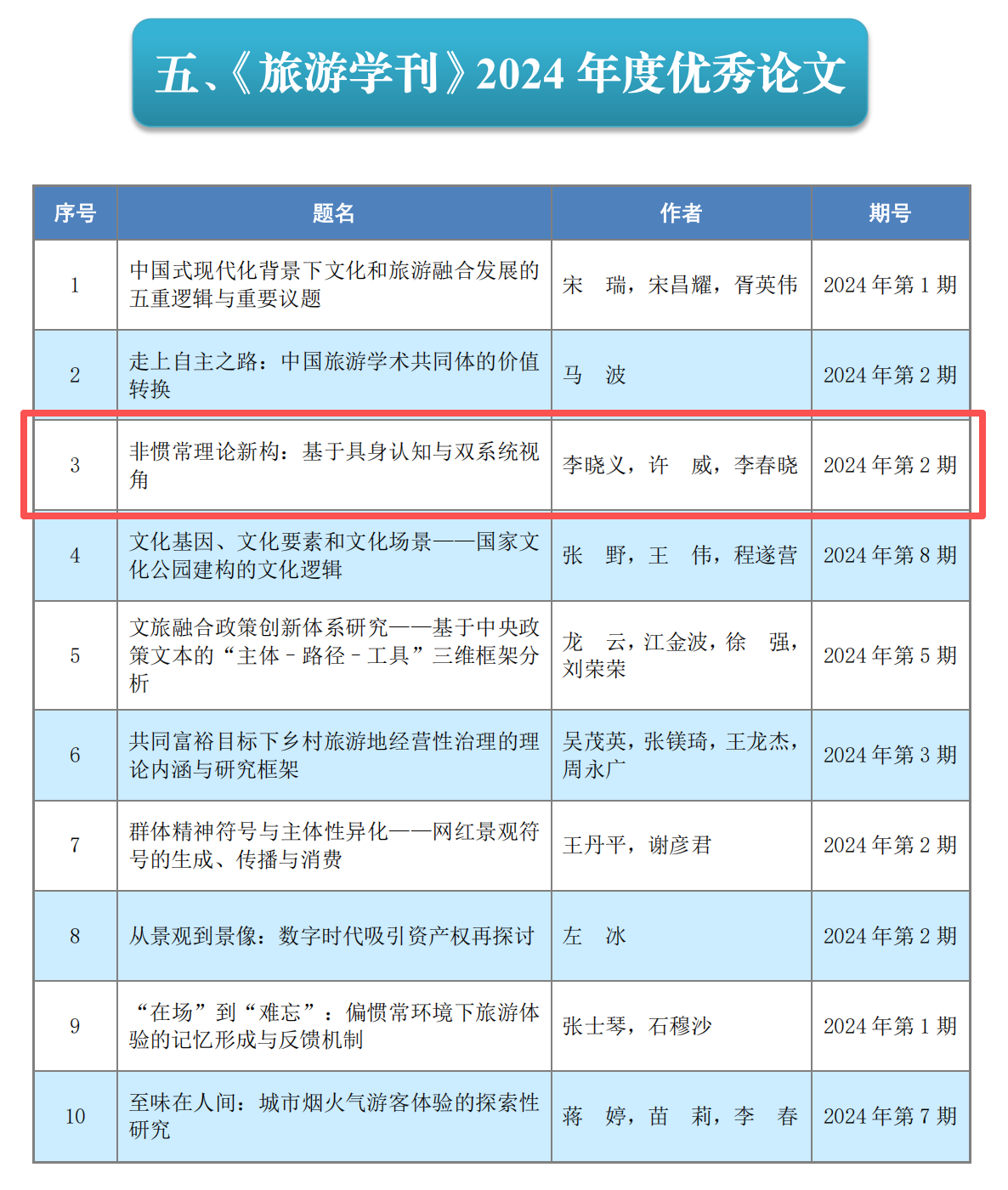 (通讯员 任池)2025年10月23日–26日,由北京联合大学、陕西师范大学主办的“2025《旅游学刊》中国旅游研究年会”在西安举办。年会对《旅游学刊》2024年度优秀论文进行表彰,我院师生李晓义、许威、李春晓合作发表于《旅游学刊》2024年第2期的论文《非惯常理论新构:基于具身认知与双系统视角》获得《旅游学刊》2024年度优秀论文奖。26日上午,《旅游学刊》副主编、海南大学国际旅游与公共管理学院的谢彦君教授作为颁奖嘉宾宣读颁奖词,李晓义副教授参加颁奖典礼并发表了获奖感言。