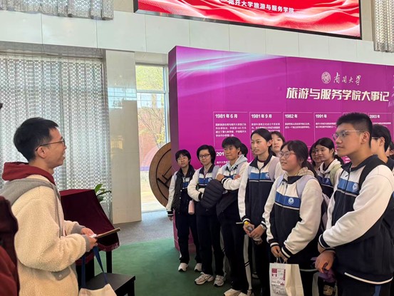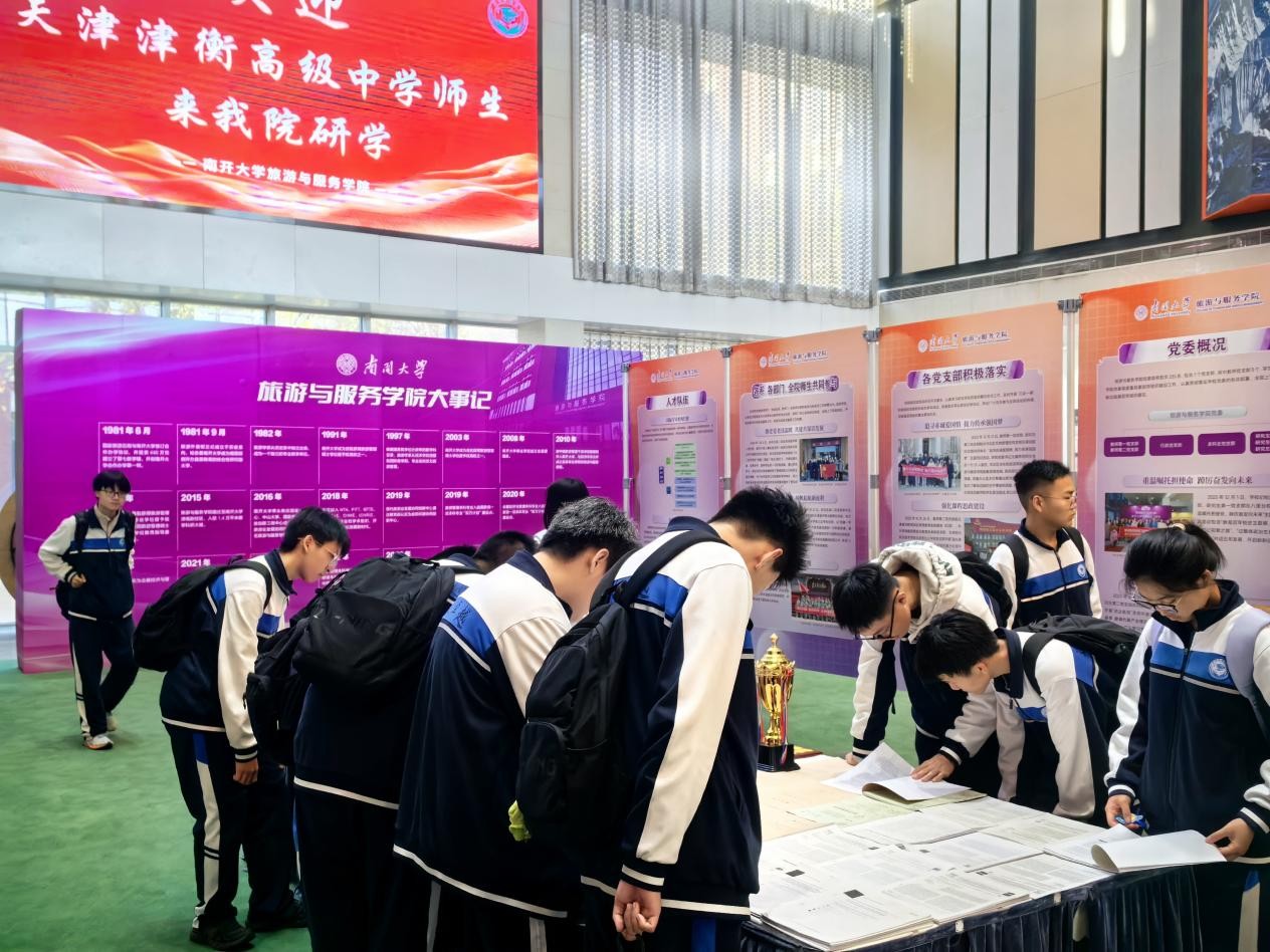 (通讯员 单竹青 侯嘉祺)为推进校地协同育人机制,深化与当地重点中学的沟通合作,11月13日,天津津衡高级中学师生代表来到南开大学旅游与服务学院学习交流,一场精心策划的研学活动在此拉开帷幕。由学院学生党员和骨干组成的志愿者讲解团队带领同学们零距离感知大学生活,深度体验旅游学科的魅力。