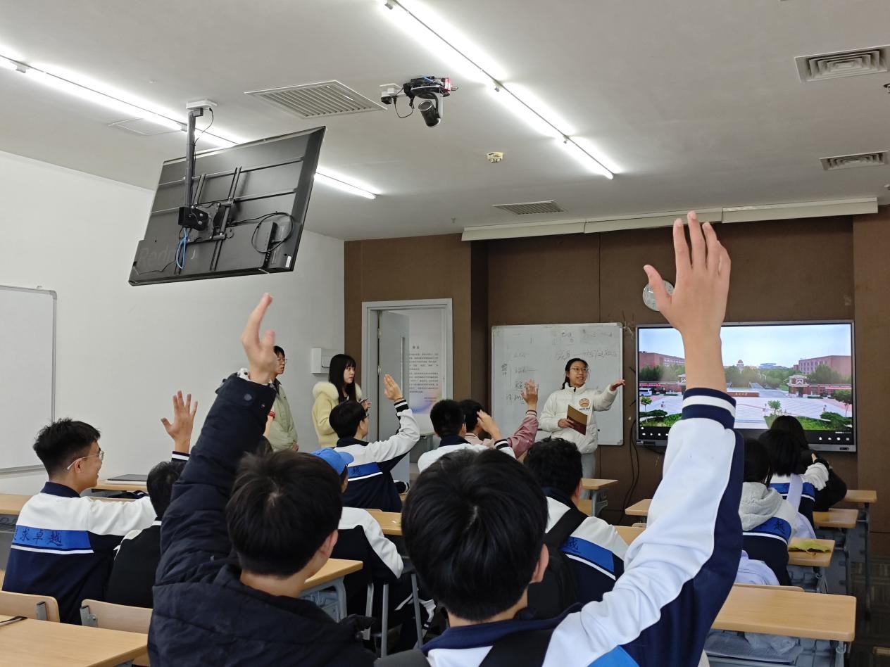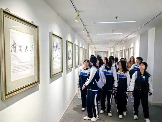 “我们学院的课堂绝不止于这栋大楼”讲解员在介绍社会实践展板时说道,“每个暑假,我们都会奔赴全国各地,将论文写在祖国的大地上。”从学科前沿的虚拟仿真实验室,到充满人文关怀的心理活动室和美育长廊,再到记录着师生足迹的实践照片墙,学院的每一处空间都在向中学生们生动讲述着一个关于成长、探索与服务的南开故事。