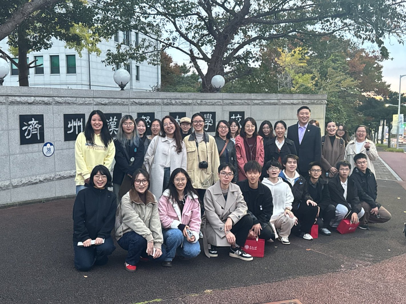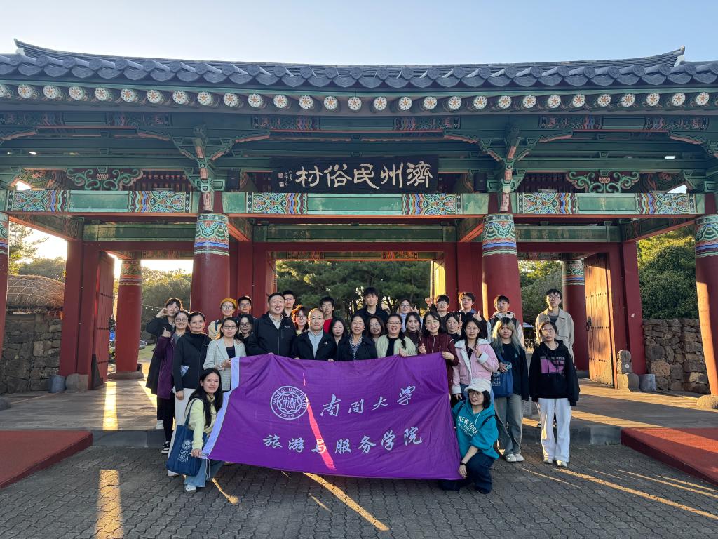 (通讯员 霍菲)为拓宽学生全球视野,加强学生全球胜任力和实践创新能力培养,促进跨文化交流,11月12日至16日,旅游与服务学院组织师生团队赴韩国济州开展交流与研学实践活动。此次活动由院长徐虹教授带队,学院2023级本科生班导师、辅导员、人事秘书共同随行,学院2023级、2024级全体本科生及部分研究生代表一行22人参加。师生一行前往韩国汉拿济州大学参加大学生中韩文化于旅游研讨会及济州国际自由城市文化和旅游国际学术研讨会,调研旅游与酒店管理专业建设情况,参观济州汉拿孔子学院,并前往当地世界非物质文化遗产、自然遗产、乡村旅游项目开展实地走访,在深度体验的沉浸式课堂中加深对学科前沿和世界旅游产业发展的认识和理解。