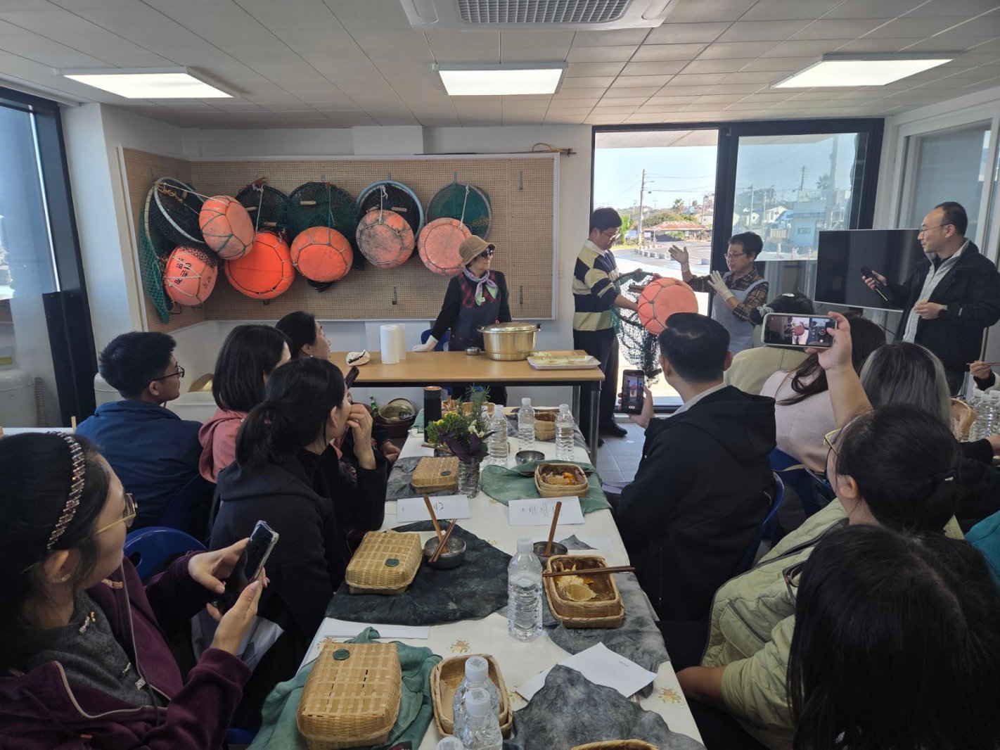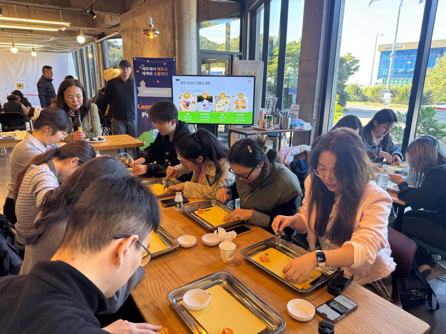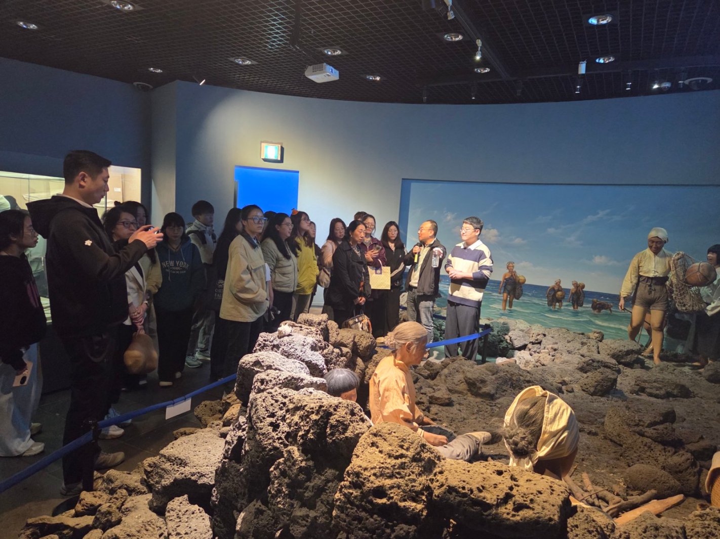 研学实践活动中,师生团队前往当地海女文化博物馆和城山日出峰分别调研当地史杰非物质文化遗产、世界自然遗产项目的保护和利用情况。当70多岁的海女唱起下海捕捞时的韩语民谣、当站在城山日出峰顶俯瞰碧波荡漾的大海,文化和自然的魅力打破了语言的障碍,让师生们深刻体会到了“构建人类命运共同体”“构建人与自然和谐共生的地球家园”的深远意义。交流期间,师生团队还深入体验了当地的乡村文旅“柑橘采摘和二次烘焙加工”项目,走访了济州传统城邑民俗村和海边五日市集,对济州的旅游项目进行了多角度的调研。