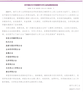(通讯员 徐琳)近日,南开大学旅游与服务学院工会基层分会凭借扎实成效与创新举措,连续第三年获评校级 “工会工作先进集体”,这份荣誉是校工会的高度认可,更是分会坚守服务宗旨、凝聚奋进力量的生动写照。