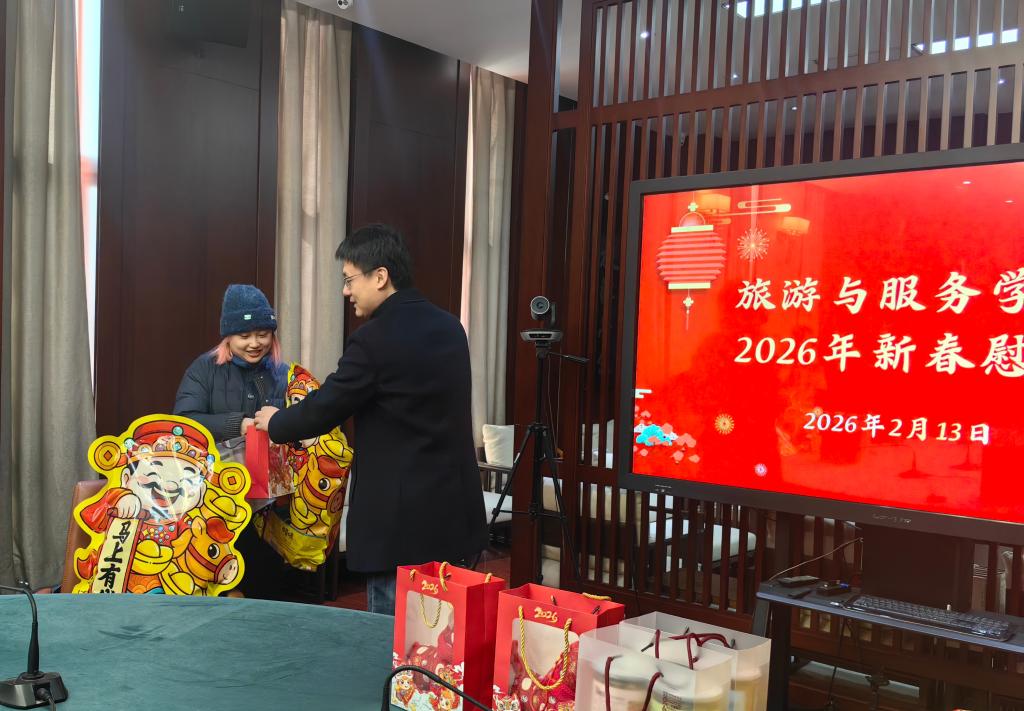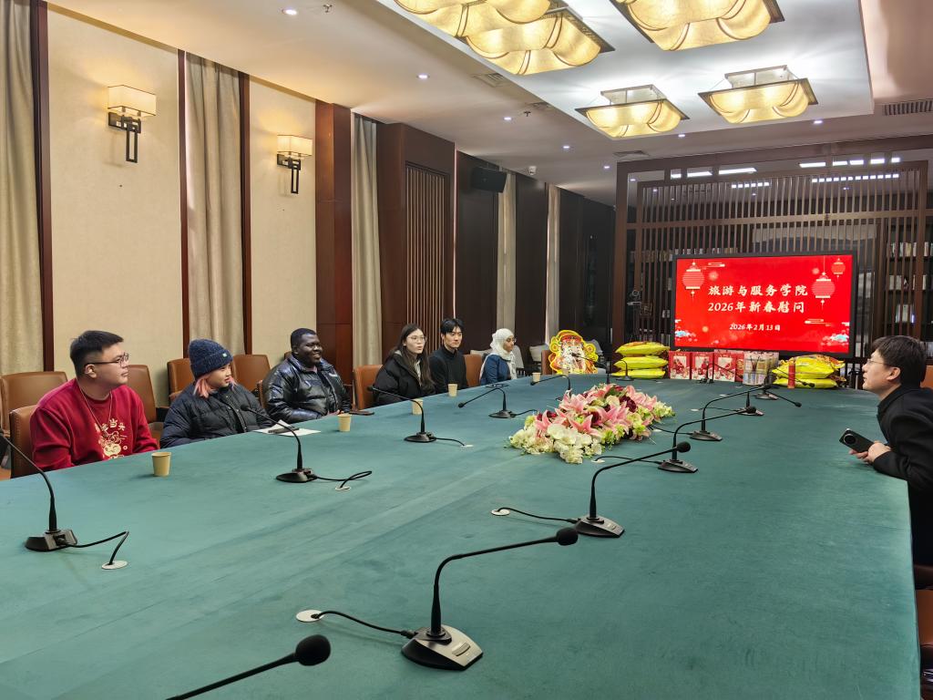(通讯员 霍菲)为保障留校学生度过平安、充实、温暖的春节,2月13日,在马年新春到来之际,旅游与服务学院面向春节留校的全体中外学生组织新春慰问活动。学院党委书记张学良出席,活动由学院团委书记霍菲主持,来自中国、马来西亚、也门、苏丹、缅甸等5个国家的学生参加活动。