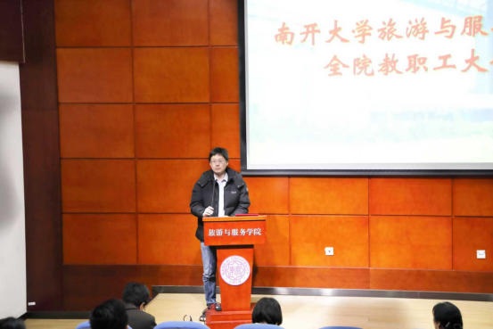 (通讯员 徐琳、全军)近日,南开大学旅游与服务学院2026年上学期全院大会在学院会议室隆重召开。会议由副院长杨德进主持,院长徐虹、党委书记张学良及全体教职工出席会议。