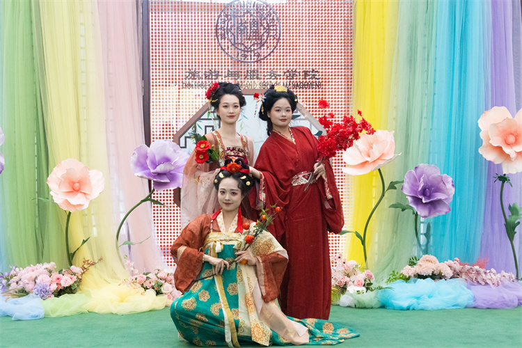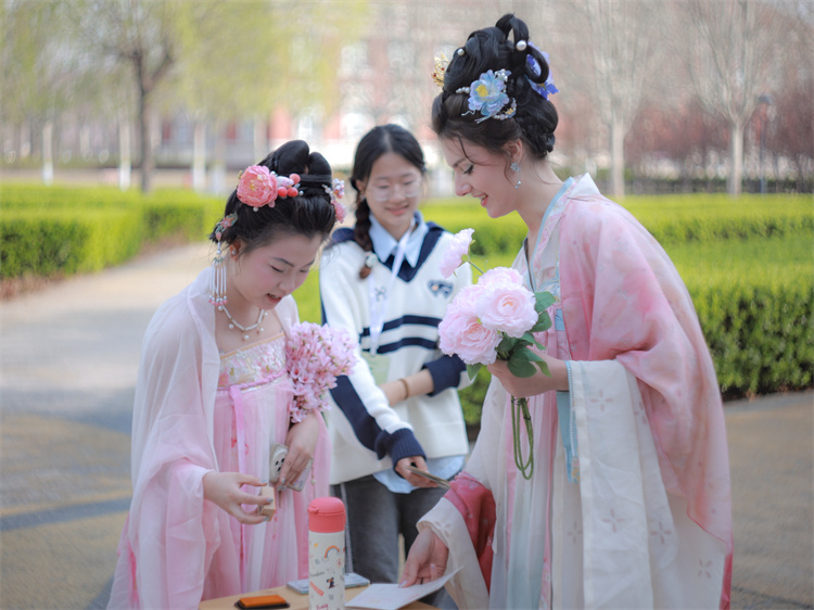 这一场充满古韵与温情的游园会也成了留学生感受中国文化的“鲜活课堂”。来自俄罗斯的旅游与服务学院2024级本科生维多利亚在活动中扮演“芙蓉花神”,她兴奋地表示:“通过扮演花神和朗诵诗词,我真切感受到了中国文化的独特魅力,这种互动式的学习让我印象深刻。”