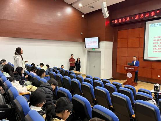 分享中,杨琪还对会展行业未来发展进行了展望,指出行业正朝着绿色化、数智化、高端化、国际化方向稳步迈进。针对师生及家长最为关心的就业前景、薪酬水平等问题,他结合相关数据详细解答,清晰分析会展人才需求趋势,为学子们的职业规划提供了切实参考。