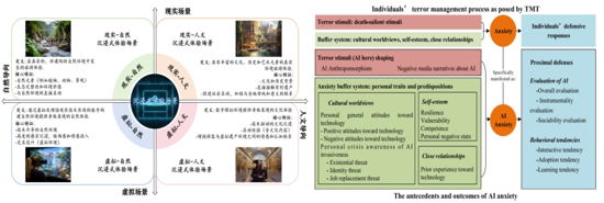 随着人工智能(AI)技术的迅速发展及其在日常生活中的日益融合,个人对于可能失去对AI的控制权愈发感到焦虑,这引发了学术界对人工智能焦虑(AIAX)的日益关注。尽管众多研究探讨了AIAX的前因和后果,但相互矛盾的研究结果以及对关键因素缺乏共识阻碍了对该现象的清晰理解。为填补这一空白,该研究对AIAX进行了元分析。具体而言,该研究基于恐怖管理理论(TMT)提出了一个理论框架,以考察AIAX的前因和后果,并运用元分析技术(k = 59,n = 91708)对其进行了检验。我们的研究结果表明,在前因变量中,感知到的存在威胁是最强的预测因素,其次是感知到的工作替代威胁、对技术的负面态度以及感知到的身份威胁——这些因素均对AIAX产生积极影响,而个人能力感知则对AIAX产生消极影响。此外,诸如个人消极情绪状态、脆弱性、人工智能拟人化、积极的人工智能行为模式以及负面的媒体对人工智能的描述等因素,被发现与人工智能焦虑存在微弱但显著的关联。在结果方面,人工智能焦虑会引发防御性反应,从而降低个人对人工智能的性能预期、社交性评价、采用倾向以及学习倾向。该研究不仅识别了人工智能焦虑的关键前因和结果,还将威胁管理理论融入人工智能研究,提供了一个能够指导未来研究的理论框架。