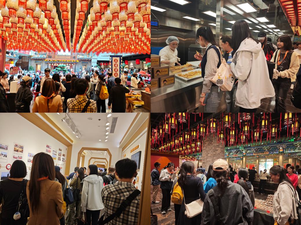 中午,同学们抵达被誉为“能吃的博物馆”的唐山宴。在景区讲解员的引导下,学生们观察了解到各主题区域的布局设计、顾客动线管理、非遗技艺展示及餐饮服务流程,在参观游览和品尝美食的过程中对旅游文化叙事、主题餐饮空间等专业问题进行了记录与思考。