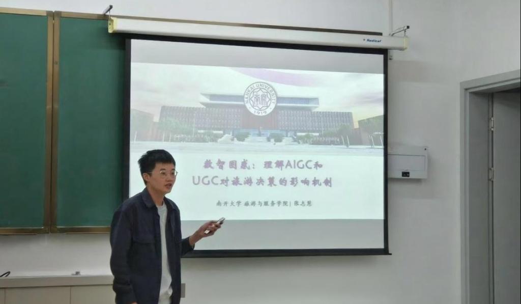 张志慧同学从实践背景、文献综述、研究设计、数据结果以及研究总结等5个方面进行了研究汇报。为探究数智时代下的消费者困惑现象,研究从信息发送者(AIGC vs. UGC)和接收者(游客)的视角,探究困惑的产生与信息加工机制。研究1和研究2采用行为实验确立了AIGC/UGC与消费者困惑之间的因果关系。基于这些发现,研究3对研究2的参与者进行半结构化访谈,这项质性研究进一步探讨了AIGC/UGC与旅游者之间的动态互动机制。