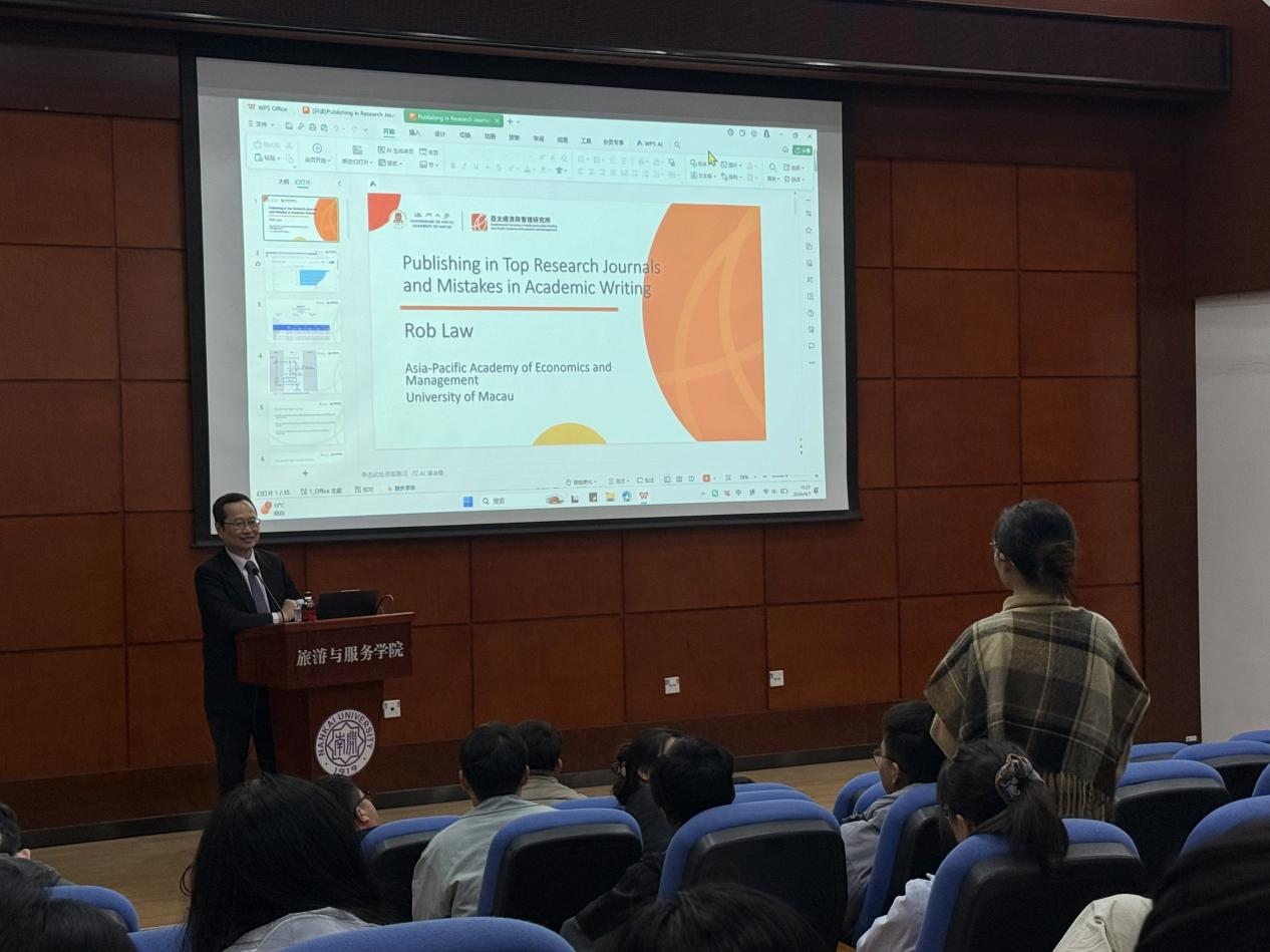 (通讯员 任池)2026年4月7日下午,南开大学“旅游大讲堂(第296期)——杰出教授讲座”在旅院与服务学院135会议室顺利举行。澳门大学亚太经济与管理学院副院长罗振雄教授带来了以“顶刊投稿和学术写作”为主题的研究报告。我院教师、硕博研究生70余人参与了此次讲座,王菁娜教授担任此次讲座的主持人。