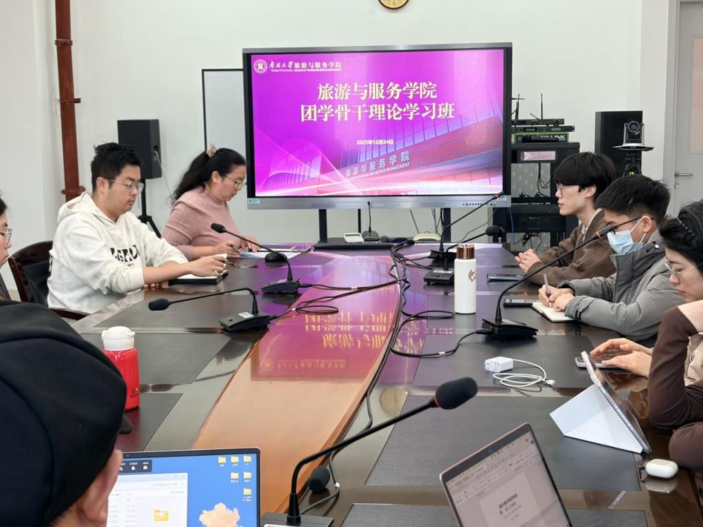 (通讯员 付倬瑄 霍菲)12月24日,旅游与服务学院2025—2026学年团学组织工作总结会暨团学骨干理论学习班第七次集体学习在学院220召开。学院团委书记霍菲、辅导员侯嘉祺及学院全体团学组织骨干参加会议。