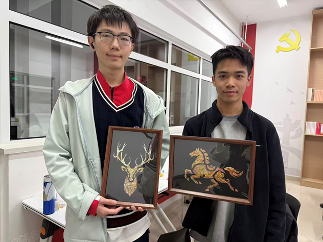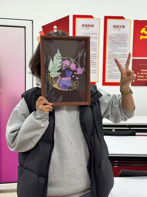随着活动推进,一件件独具匠心的非遗手作相继诞生,每一件都凝聚着同学们的心意与巧思。创作结束后,同学们满载收获与喜悦,纷纷与自己的作品合影留念。