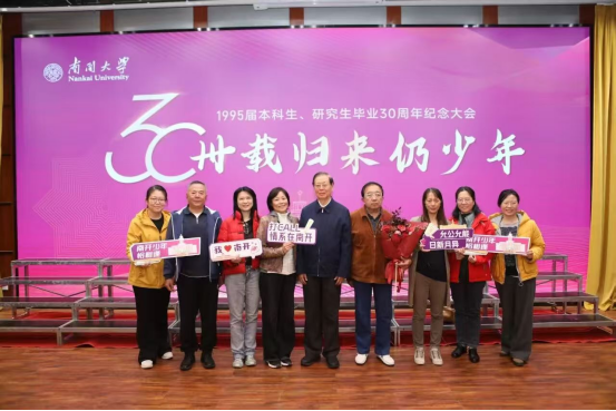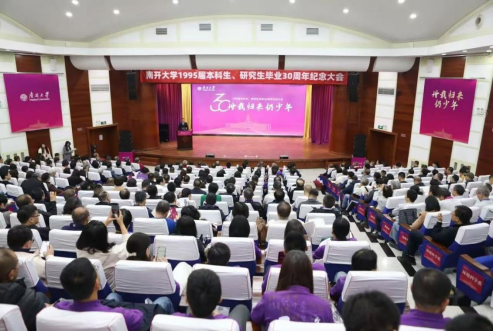 (通讯员 牛丽萍)10月19日,南开大学建校106周年,暨1995届本科生、研究生毕业30周年纪念大会在八里台校区主楼小礼堂隆重举行。南开大学旅游与服务学院退休教授王健及95届校友代表重返南开校园,参加纪念大会。办公室哈志勇、牛丽萍老师全程陪同参会。